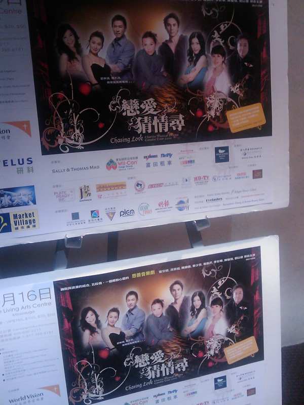 Me, Cheryl and her mom went to see 戀愛猜情尋 (Chasing Love) at Living Arts Centre over the weekend. Here is some of the details of the play below.