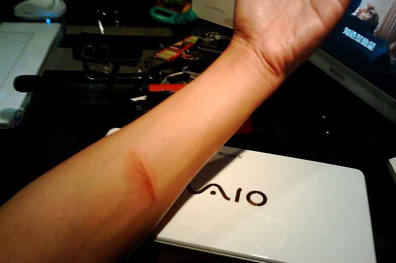 We had a great time on Friday cooking stuffs, but something went wrong that day tho, I burnt my arm by accident while I was pulling out my sponge cake out from the oven. It has been 2 days now, and the burnt mark looks like this in the picture below, it’s quite huge isn’t it and it still hurts 🙁 I really hope it will heal soon before my parents come back or they would ask me if I was doing something crazy in their house while they were gone :p Anyways, I will try to be more careful in the future 😀