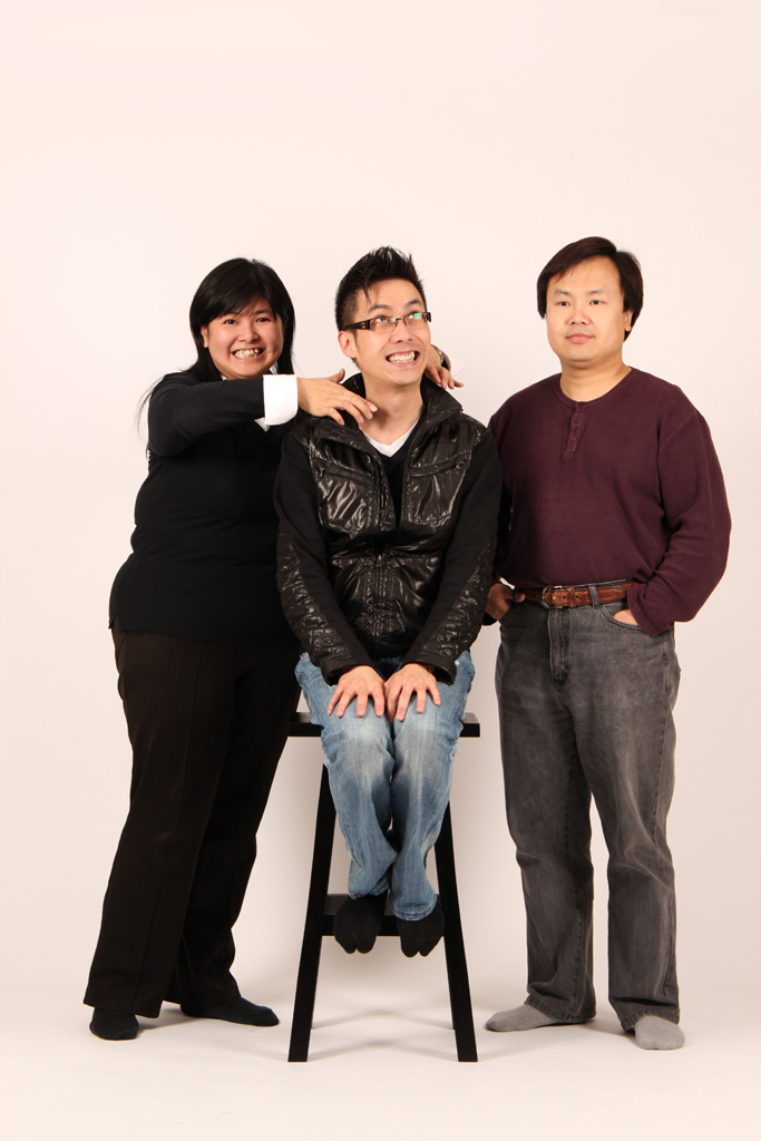Surprise visit from an old friend, who? An old primary school classmate Clara Tam, we haven’t seen each other for at least 24 years, if you remember, I had a post http://www.karlng.com/blog/?p=1869 about Ricky Ho’s visit, who was also Clara’s classmate at one point. Why was it a surprise? She sent me a message on facebook on Wednesday night, and was in Toronto on Thursday, so do you call it a surprise then? hehe. Anyways, me and Sunny took her to my favorite place (Moxies) for a delicious dinner on Friday, then we came back to my house to play around in my studio and waited for Raymond to show up. Of course we took some group pictures together, but we had to shoot using a timer shutter and of course, we created some hilarious pictures to show you, more like bloopers :p