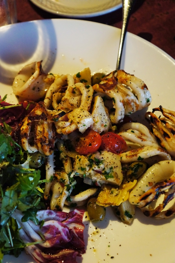 - Grilled calamari with sauté artichokes