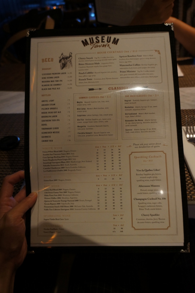 I left work early to see Hong Kong Sinfonietta Conducted by Yip Wing-Sie Toronto, so me and Karen just wandered around bloor and yonge area shopping and looking for a diner before the show. After minutes of walking, we found Museum Tavern. A diner that just opened for 2 months right across Koerner Hall, we had no idea how good it was or what so ever but we walked in anyways :-p The place is small but the atmosphere is nice, a patio on bloor, where can you find something like that right? hehe Small kitchen but with big heart chefs because you could hear the chefs yelling out orders I wondered why? Surprisingly, the food we ordered was amazing good, so if I go shopping in that area next time, looking for a place to eat, I would probably go back there and try other things because my order, baby ribs tasted very very good and Karen’s chicken tasted amazing too!!! Let’s take a look at some pictures 😀
